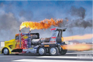 在加拿大安大略省,一对父子购买并改造的一辆名叫“冲击波”(Shockwave)的旧卡车,超越了目前最高车速保持者日本的“子弹头”,成为世界速度最快的喷气动力卡车。