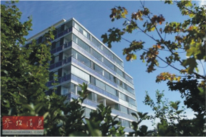 | 赫尔辛基一座建于上世纪90年代的楼房,外立面安装着太阳能板。摄影/李骥志 |