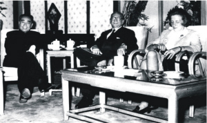 | 1963年10月,周恩来会见戴高乐总统代表、法国前总理富尔(中)。 |