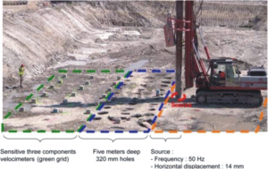 在试验过程中,研究人员在土壤中挖出了5米深的圆柱形孔洞网络,然后使用地震仪传感器来监测力量如何在这片区域中传播。正如他们所预料的,声音由于声学特性在洞穴排列中产生了共鸣,并且在孔洞周围产生了折射。