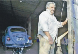 在照片里,穆希卡就像一个普通农民,身边是他的狗,还有一辆老旧汽车:价值1300欧元的甲壳虫。2012年他申报的收入为1000欧元,因为作为总统工资的另外9000欧元已经被他用于援助项目。