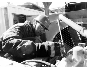 图为酸化员工正对柴油机零部件进行维保。 (张栋梁)
