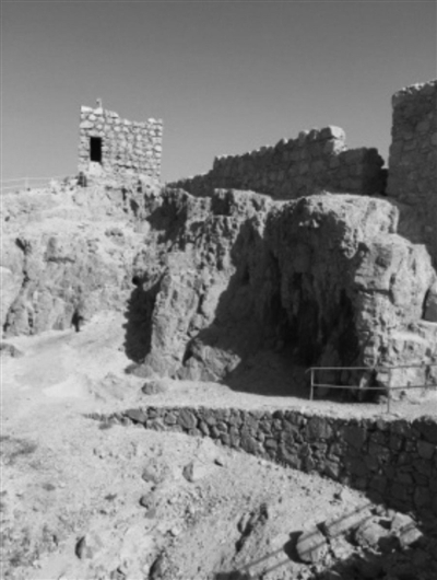 马萨达要塞是公元前113年,古犹太国希律王时代修建的。当时希律王考虑到国家安全,在耶路撒冷以南60多公里的沙漠中,选中了一个300多米高的山峰,按照当时流行的希腊风格,为这座要塞设计了1500米的双层围墙,还修筑了38个10米高的碉堡,作为犹太人的家园。它一边临着死海,一边是崇山峻岭,是一夫当关、万夫莫开的好地方。