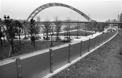 由武汉市城市防洪勘测设计院牵头自主研发的拼装式防洪墙,日前在湖北汉口江滩流通巷段投入使用。防洪墙挡板为特殊材质的铝合金,强度较大,能够顶住洪水长时间浸泡和高强度加压。 新华社