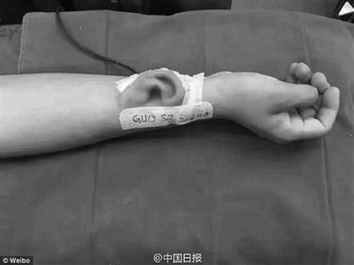 据英国《每日邮报》11月9日报道,西安交通大学第一附属医院的郭医生成功在病人的胳膊上培育出一只耳朵,几个月以后将为该病人进行耳朵移植手术。这在中国尚属首例,在世界上也属医疗奇迹。