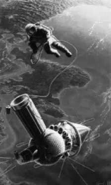 | 列昂诺夫本人绘制的太空行走场景图 |