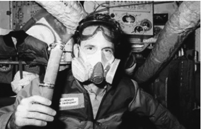 1997年2月23日和平号空间站曾经发生过一起严重的航天事故。火灾发生的当晚和平号空间站上共有6名宇航员,其中一名宇航员受命更换高氯酸锂罐(罐子外形神似蜡烛)。当宇航员按照步骤挑选出新的“蜡烛”并点燃时,意外发生了。火焰突然从罐中喷出,“蜡烛”像小型火箭一样漂浮着并引燃了四周墙壁,紧接着释放出大量浓烟。
