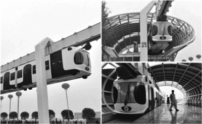 11月21日,在成都双流空港经济技术开发区的中唐空铁产业基地,新能源空铁总设计师、中科院院士翟婉明宣布:世界首条新能源空中铁路(简称空铁)试验线成功投入运行。它把铁轨架在空中,把车厢悬挂在空中,不与人争路,不与车争路,不与植物争生存空间……