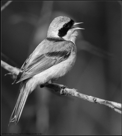 2016年1月4日,休假结束,终于开始上班。天刚亮,我便奔向南海子,去寻觅那神秘的苇中精灵。沿着冰湖沿岸的芦苇丛,且行且听,几声鸣啾,驻足观瞧,果然还在这里,两只灰色小鸟,浓重的黑色过眼纹,俨然一副伯劳的模样,只是比伯劳小得多,甚至比麻雀还小巧。