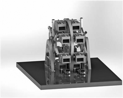 记者从发明者提供的模型图片看到,“飞轮式停车机器人”的设计十分独特,酷似缩小版的“摩天轮”。据介绍,“停车机器人”由两个载体转盘组成,每侧载体车库上沿转盘的周边布设6个车厢,这意味着这个“机器人”可以同时停12辆车,占用的只有2.5辆车大小的空间。