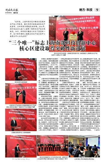 “三个唯一”标志上海南部科技创新中心 核心区建设取得突破性新进展