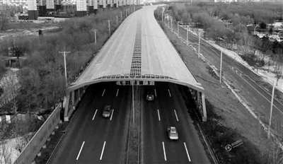 2017年2月5日,沈阳南二环千米全封闭式降噪“路罩”竣工投入使用。据了解,该降噪“路罩”为东北首个,全长近千米,横跨26.5米,高5-8米,斥资6000万元建成。这个路罩采用钢结构框架,由金属复合吸音板、采光隔音板和通风金属格栅板相结合的表面材料组成。它还具备防撞、防火与通风,抗风/雪荷载、车辆通行/照明、顶面清洗、内部的绿化带绿植维护、结构维护等功能。视觉中国