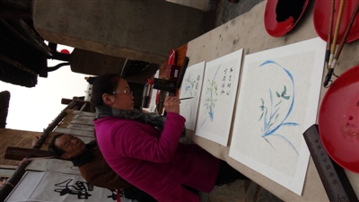 | 画家李祥兰现场画兰花 |