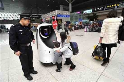 2月17日,河南郑州上线全国第一款警察机器人,在高铁站进行巡逻执勤。它可利用视觉系统不借助任何人力控制进行自主行走,自主移动抓取人物脸部信息,进行面部识别,协助民警抓捕逃犯。据介绍,在试运行一周后,将主要用于该站夜间重点时段的巡逻监控。除了巡逻外,它还可与旅客互动解答疑问。环球网