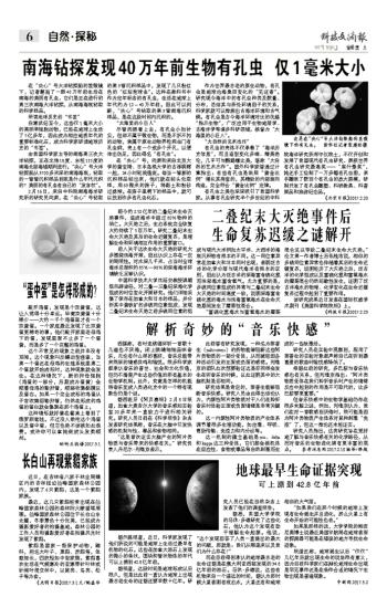 南海钻探发现40万年前生物有孔虫 仅1毫米大小