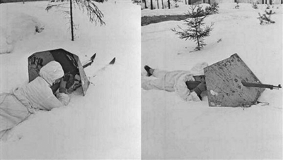 雪橇盾牌又被称作步兵坦克,因为它是用12毫米厚的装甲做成的,在上面除了留给步兵可以射击的小口外,还有一个可以观察环境的可视窗。但是整面盾牌都架在雪橇上,其重量已经超过了80公斤,行动起来十分艰难,甚至有一些都陷进了雪里一英尺深。许多士兵都因为其难以移动而死。