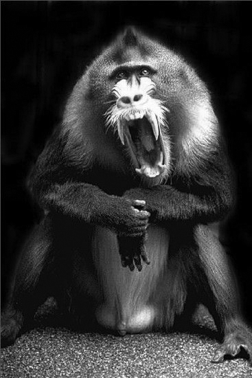 再看它的全身,毛为黑褐色,肚皮下灰白,屁股为淡紫色,由于血管丰富的缘故,兴奋时,这种颜色更为明显,有时会变的鲜红。尾比较短,像个拳头似的贴在那儿,头却大的出奇,几乎同雄狮的头差不多。其身长可超过80厘米,站立时有1米多高,体重达30至40公斤。