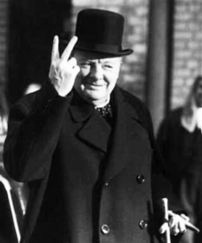 这个手势源于英法百年战争之亚金科特战役,法国人扬言将砍掉英国弓箭手的中指和食指,让他们变残废,不能再张弓射箭。但后来英军打败了法军,胜利后,英国人伸直中指和食指,掌心向内,向法国俘虏示威,意思是:我们的手指头是完整的。这个动作在后来就延伸成是羞辱对方的意思。巧合的是,不论正反,V字手势都是通过丘吉尔被普及的。