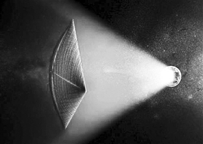 | 这是接近行星大小的无线电发射机产生的足以推动星际光帆的能量的想象图(附图)。科学家观察到的快速无线电暴可能由这种发射机产生。 |