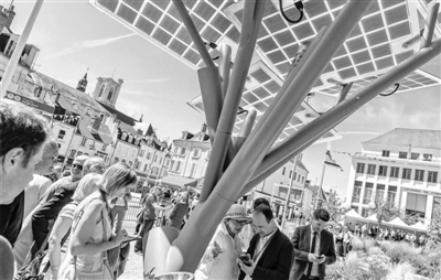 据法新社报道,欧洲第一棵太阳能树日前在法国中部城镇内韦尔亮相。树木巨大的方形叶片可以将太阳能转换成电力,供路人给手机充电、上网或在“树荫”下乘凉。根据报道,这项科技由以色列公司Sol-logic研发,位于卢瓦尔河岸、拥有3.7万人的内韦尔则是欧洲第一个试验这项科技的城市。外观充满未来感的“电子树”,不仅提能供饮水,还可供应路灯照明。 光明网2017.5.31 文/赵怡蓁