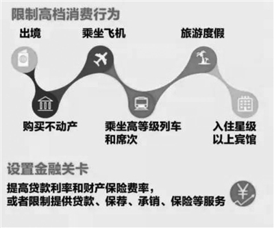 失信者会被限制高档消费行为,包括出境、购买不动产、乘坐飞机、乘坐高等级列车和席次、旅游度假、入住星级以上宾馆。据了解,这些失信者,大多为欠钱不还、欠税不缴,在法院判决后依然无动于衷的“老赖”。