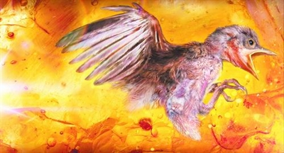 近日,中、加、美等国的古生物学家宣布,他们发现了有史以来第一件琥珀中的雏鸟标本。发表的标本昵称“比龙”,是一只较为完整的、出生仅数周的反鸟类雏鸟。这件标本距今约9900万年,属于白垩纪中期的诺曼森阶。 专家表示,琥珀的特异性使比龙标本保留着迄今最为完整的古鸟幼鸟羽毛和皮肤,这在白垩纪的标本中尚属首次,这些细节包括羽序、羽毛的结构和色素特征等。