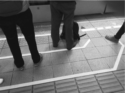 | 台北捷运站里乘客候车路线十分清晰醒目,有的长达几十米。 |