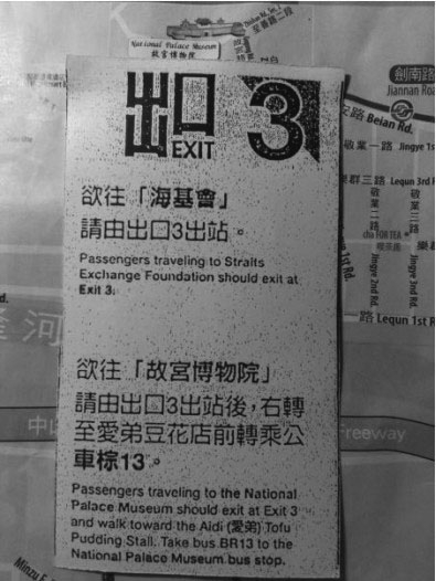 一次去台北故宫博物院参观,在捷运“大直”站下车后,我向车站工作人员打听,应该从哪个出口出去,以及乘坐哪路公共汽车,工作人员马上递给我一张纸条,上面用中、英文详细标明了去故宫博物院的出口和相应公交车站的具体路线以及乘坐哪几路公共汽车等信息,可见对这类高频率的乘客问题早已妥善准备、应对自如了,让人深深体会到捷运服务的贴心与高效。
