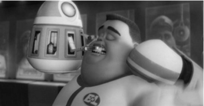 科幻动画电影《机器人总动员》中,所有的人类都堕落成完全依靠电脑的帮助才能吃喝拉撒的胖子们,不会自己走路,都有机器人伺候。虽然因为地方小大家离的都很近,但是人们每天的生活主要是坐着看电视购物频道,以及打电话。互相之间也没有什么感情交流。所有人都是经济学家设定的理性人,从小接受的电脑教育就是要消费消费再快点消费。