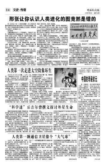 其实,《进化的行进》这幅图最初只是一个插图,书中对这幅图的注释解释得很清楚,其本意并没有暗示人类的线性进化,也没有暗示人类进化具有一定的方向性。这幅画在现代文化中的流行程度绝对是作者始料未及的。而流行令它完全脱离了最初的科学性,最终反而传播了对人类进化的误解。 新民网2017.7.13 文/崔娅铭