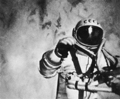 预计出舱的时刻到了,全身披挂的列昂诺夫深深吸了一口气,小心翼翼地打开气闸舱的舱盖,由一条15.35米长的特制安全带拴着,踏出了人类迈向太空的第一步。