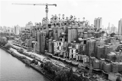 近日,上海普陀区苏州河畔的一处新建筑走红网络,建筑顶部高度不一的承台上种满了各种绿植,远看似一座郁郁葱葱的山丘赫然出现在闹市之中,有种“世外桃源”的即视感,有网友称之为“空中花园”。