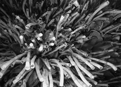 这是生活在墨西哥湾冰冷海底的管虫,研究人员通过测量其长度,发现一种管虫的寿命超出科学家的预期,部分个体的寿命可达到300年。这些管虫生活在海底3300米深处海底裂缝,该环境渗出富含碳氢化合物的液体。