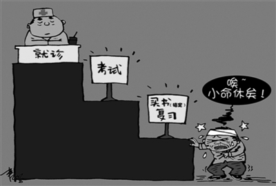 当下医患关系本就紧张,加之考试内容全来自医生自个出的书里,为了考试过关自然要掏出钱包买那张医生的四本巨作,这样一场“强买强卖”的考试下来,患者对医生的信任又剩多少?
