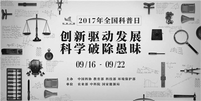 科普时报讯 记者从中国科协获悉,以“创新驱动发展,科学破除愚昧”为主题的2017年全国科普日活动将于9月16日-22日在全国各地开展。活动主要包括北京主场活动和全国系列联合活动两大部分,其中,北京主场活动将采用A区(中国科技馆)+B区(北京奥林匹克公园庆典广场)的模式开展活动。
