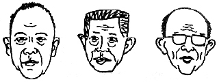 | 中国科学史学科三老漫画像,从左至右分别为李俨、钱宝琮、严敦杰(王渝生画) |