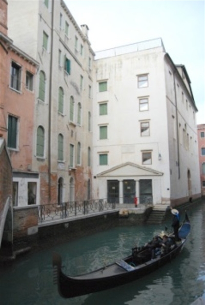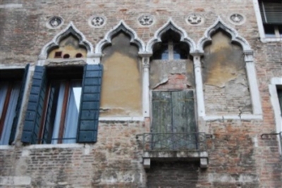 现在威尼斯这个“马可·波罗的故居”就是一个位置,意思是当年这里是马可·波罗故居所在地,但是老房子在1597年因火灾被毁。后来过了很久,几经变迁,在原址上新建了一座歌剧院,歌剧院以Maria Malibran命名,她是一位生活在19世纪初的女高音歌唱家。马可·波罗故居现在所能看到的残存的遗迹在Corte Secondary Milion。这是一个连接入口到剧院的庭院(见图2)。庭院的格局如果对照Pauthier的钢雕画(即图1),是颇为相似的,特别是楼上窗户的造型(见图3)。我以为,这幅钢雕画并非凭空想像,而是实地观察后创作的。但画家忽略了老屋早已毁掉,这不过是旧址上盖起的房子。