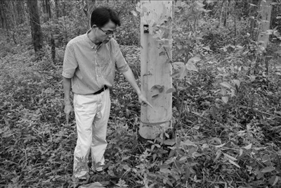 | 图为国家林业局桉树研究开发中心主任谢耀坚在讲解桉树 |