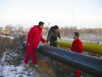 图为大庆油田防腐检测中心对庆哈长输管道进行现场检测。