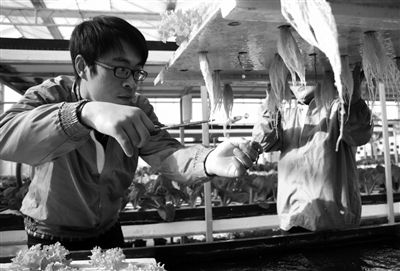 12月12日,无棣县水湾镇山东鑫嘉源现代农业科普示范馆员工在清理水培蔬菜根系。