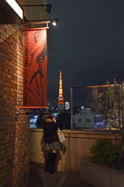 | 圣诞节之夜,日本东京六本木,一位穿短裙的年轻女性在拍摄远处的东京塔。在寒冷的冬夜她似乎并不觉得冷。 |