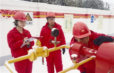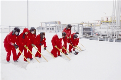 | 长庆采气二厂神木天然气处理厂员工正在清理厂区积雪 |