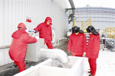 图为对储油罐进行脱水防止油罐冻凝。通讯员 孙秀丽 摄影报道