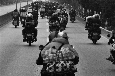 作为广东独有的春运现象,每年都有超过40万的返乡摩骑,带着妻儿,骑行上千公里,从广东各地返回广西、湖南、江西、贵州等地过年。上路,加油,歇脚,再上路。风餐露宿只为能尽快回到温暖的家。