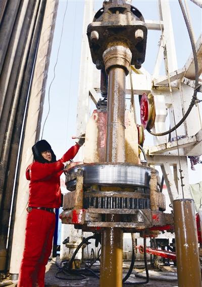 图为1月31日,西北油田采油一厂新井TK155X井在下钻施工。