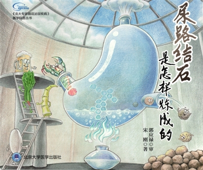 在《尿路结石是怎样炼成的》分册讲述结石的成因,以《西游记》开头石猴出世的故事——感之既久,内育仙胞——作为引子,引出结石形成的两大因素——需要成石核心,需要长久时间。
