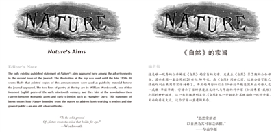 第一篇文章是《〈自然〉的宗旨》,开章明义地宣布《自然》的办刊目标就是成为科研成果的宣传平台和科研信息的交流平台:
