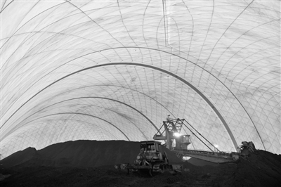 日前,河北邢台国泰发电有限责任公司投资7200多万元建成气膜全封闭煤场并投入使用。该设施作业面积37000多平方米,有效解决煤场扬尘污染问题。 新华社记者 朱旭东 摄