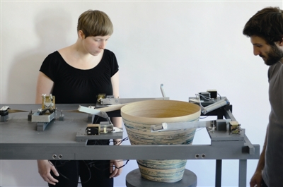 | 第三届艺术与科学国际作品展获奖作品: Collective Works 一个编织篮子的机器,只有观众观看时才工作,人和机器的关系被质疑。 |