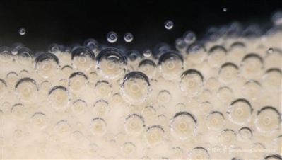 图片是采用显微摄影技术拍摄的反应过程中产生的气泡。它们优雅而轻盈,隐藏于微观世界的王国中,有其独特的姿态与存在方式。